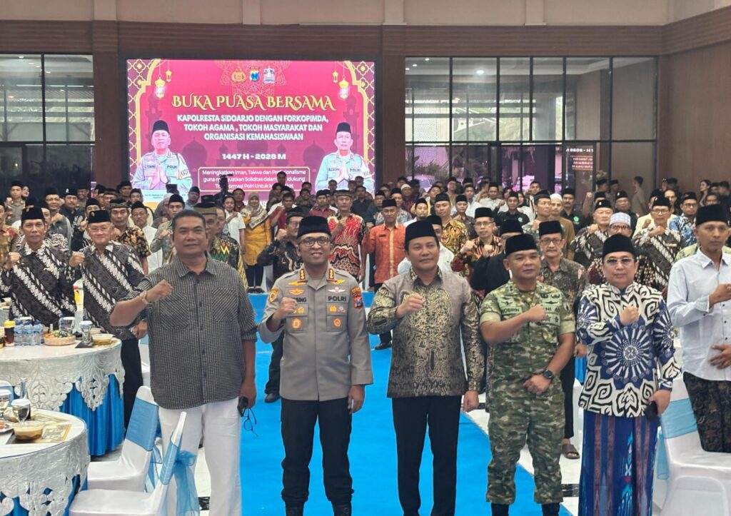 bersama Forkopimda dan sejumlah tokoh masyarakat yang digelar di Gedung Serbaguna Polresta Sidoarjo, Kamis (5/3/2026).