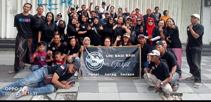 Minggu (1/3/26) LPC ( Laskar Pelangi Community ) Surabaya, gelar baksos berbagi Tak’jil dibulan suci Ramadhan sebanyak 1000 bingkisan. Pelaksanaan berbagi di Jl. Mayjend Sungkono belakang bascamp LPC, sasaran utama musyafir dan penguna jalan serta Abang becak. Dihadiri Owner Mujilali, Bang Joz Ketua LPC Surabaya, Sinyo ketua pelaksana, beberapa Owner dari comunitas serta beberapa pengurus LPC juga semua anggota.