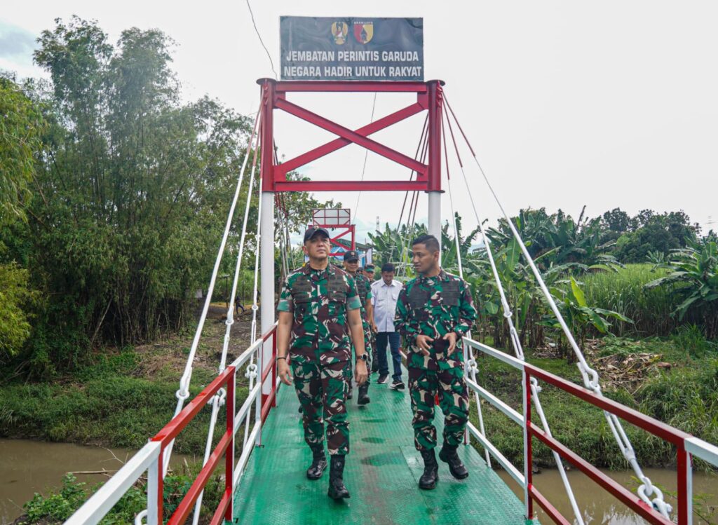 NGANJUK, – Pangdam V/Brawijaya Mayjen TNI Rudy Saladin M.A. meninjau langsung Jembatan Perintis Garuda di Desa Bagorwetan, Kecamatan Sukomoro, Kabupaten Nganjuk, Kamis (05/03/2026). “Jembatan ini menjadi urat nadi baru bagi kehidupan sosial dan ekonomi masyarakat,” tegas Pangdam V/Brawijaya.