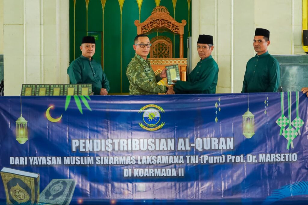 Di tempat terpisah, Kepala Staf Koarmada II Laksma TNI Agam Endrasmoro, turut mendistribusikan Al-Qur’an di Masjid As-Salam yang berada di Daerah Basis Angkatan Laut (DBAL) Koarmada II. Kegiatan ini menjadi bagian dari rangkaian penyaluran wakaf Al-Qur’an kepada prajurit dan masyarakat di lingkungan Koarmada II guna memperkuat pembinaan rohani serta meningkatkan kecintaan terhadap Al-Qur’an.