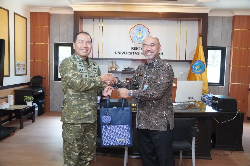 Surabaya – Rektor Universitas Hang Tuah (UHT) Laksamana Muda (Purn) Dr. Ir. Avando Bastari, M.Phil., M.Tr.Opsla., IPM., ASEAN Eng., menerima kunjungan silaturahmi Panglima Komando Armada II (Pangkoarmada II) Laksamana Muda (Laksda) TNI I G. P. Alit Jaya, S.H., M.Si., di Kampus Universitas Hang Tuah, Surabaya.